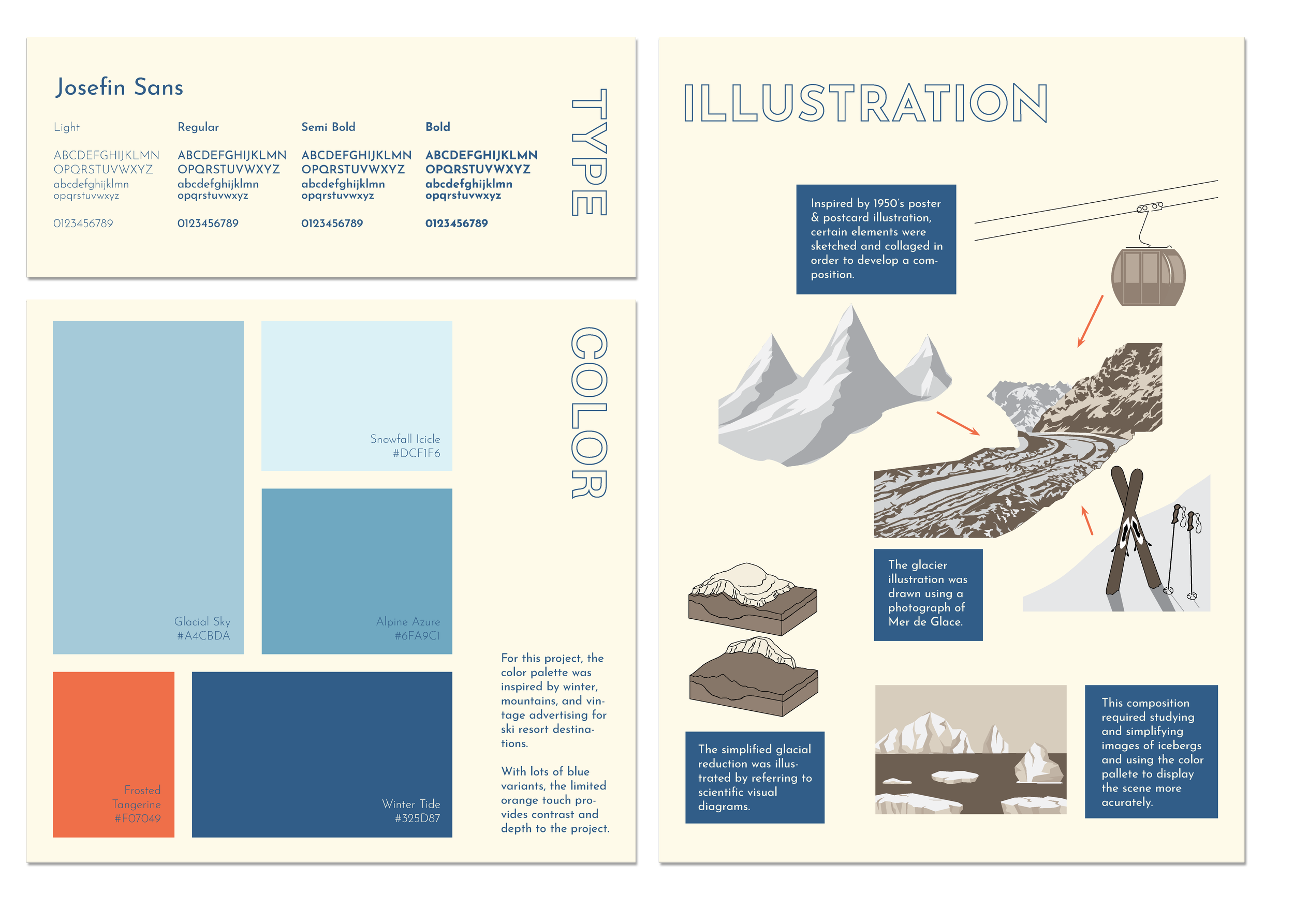 Last-Chance Tourism is a term used to describe environmentally at-risk travel destinations (i.e. Coral Reefs, Glaciers, Rain Forests, & more). This Infograph-based project displays the importance of making complex information easy to digest to a wide audience.